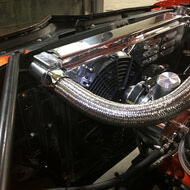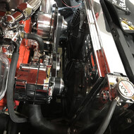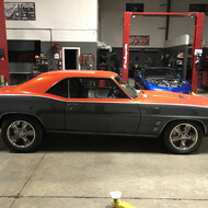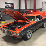 This amazing 69 Firebird came in for a dyno tune and some upgrades to keep the heat down. The existing cooling system just could not keep up with all the crazy power of the BigBlock, so we installed a larger crank pulley, champion 23” core radiator with Ledfoot racing fan shroud and dual Spal 11” fans. Then we fabricated brackets to mount a larger tranny cooler and adjusted his exhaust to fit the lowering leafs better and stop banging everything every time he jumped the rail road tracks.